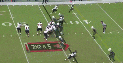 On the next play from scrimmage Ufomba Kamalu wraps up Knighten, which causes the refs to blow the play dead. For whatever reason it wasn't enough to be credited with the sack, so Kamalu then proceeds to rag-doll him to the ground.
