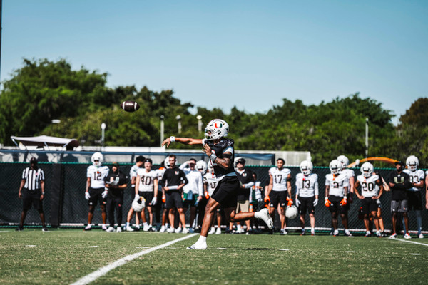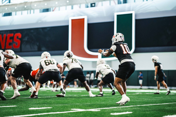 “A complete professional,” Miami head coach Mario Cristobal said of Mensah. “Ownership of the system, great command, personality, arm talent, escapability, pocket presence, accurate, knowledge [and] a great energy about him as well. People gravitate to him and people are attracted to that kind of energy. I think he’s another galvanizing agent. We’ve been very fortunate in that regard over the past several years about the quarterback being someone who galvanizes people.”
