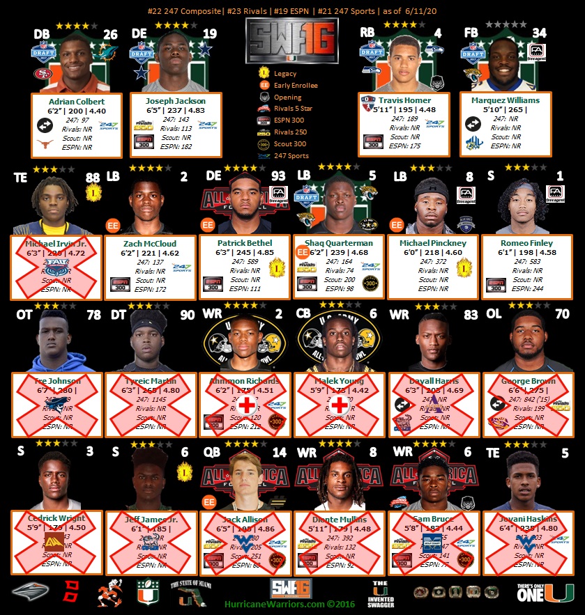 Only 6/22 players from the SWAG16 class played for the U for 4 years or more... Zach McCloud is the last player from the class who is still enrolled. Not one offensive player started more than 1 year. Homer and Williams are the only offensive players from the class to end their careers at the U. They combined for 4 years at Miami.