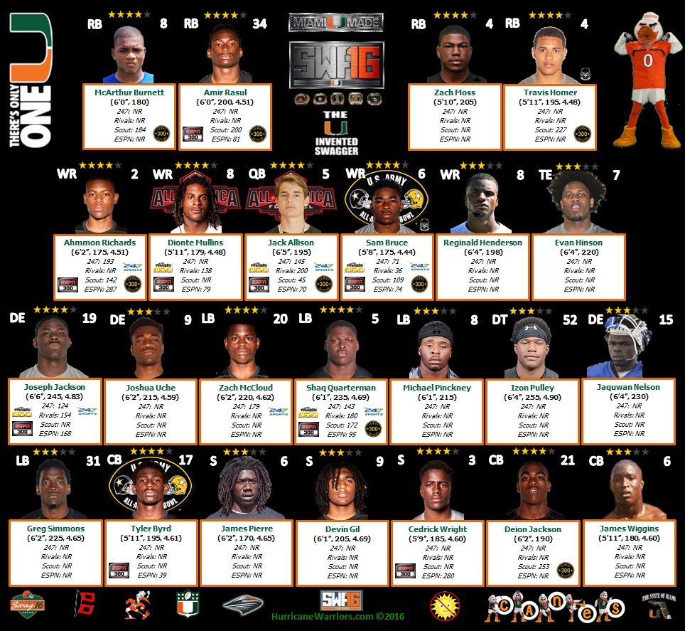 Actually 247 is not that bad. The only 4 star on ESPN and 2 star on 247 is Moss. Moss is the only 2 star Miami commit on 247. He was previously unranked on ESPN and they decided to give him 4 stars. 78 is a high 2 star on 247. Everyone else has him as a 3 star. There are actually only two 2 stars given out to all the Miami commits over all 4 services: