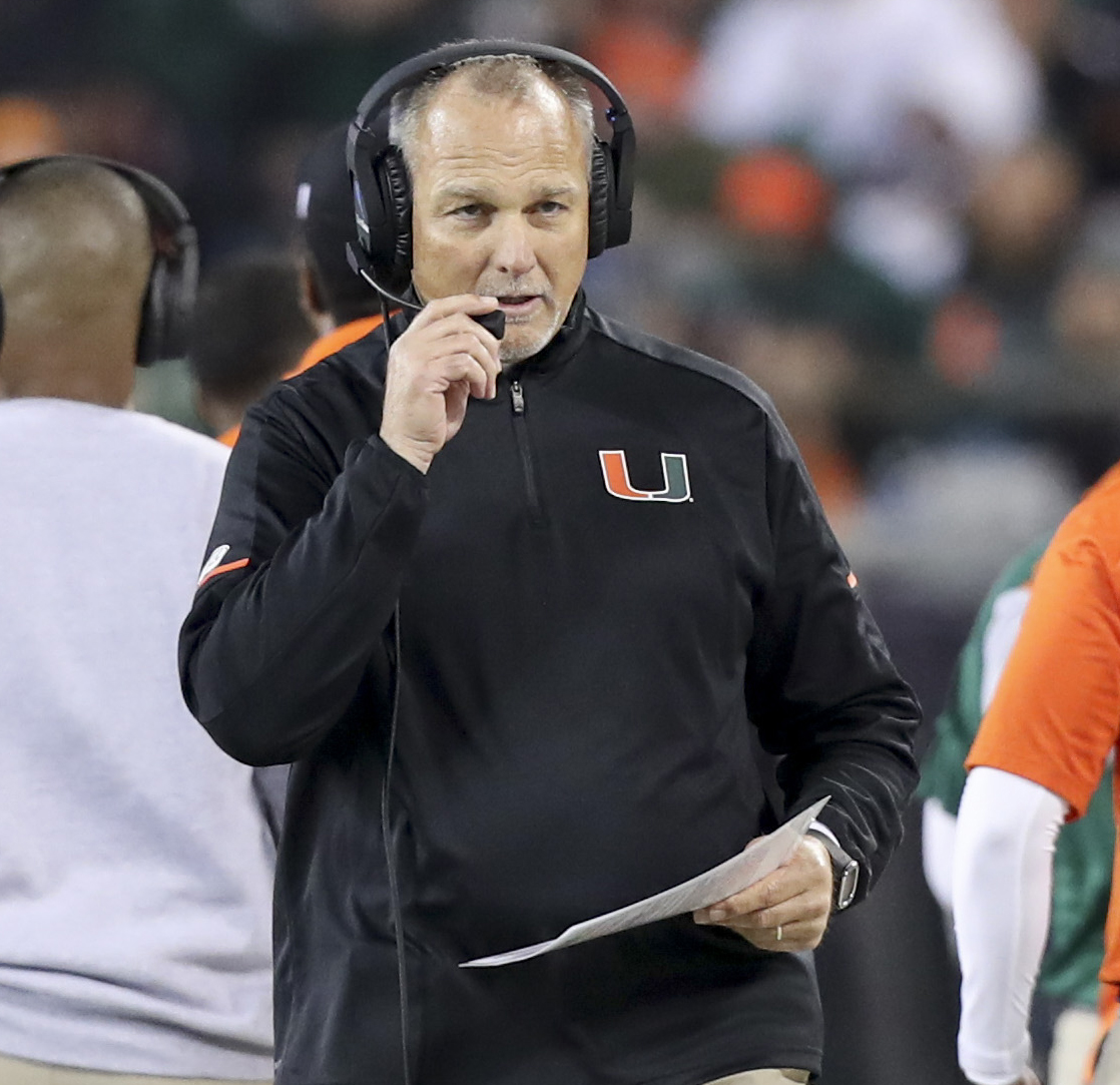 Miami Hurricanes head coach Mark Richt is seen on the sidelines during the second quarter against the Clemson Tigers in their ACC Championship game Saturday, Dec. 02, 2017 in Charlotte, NC. (MONICA HERNDON | Times)
